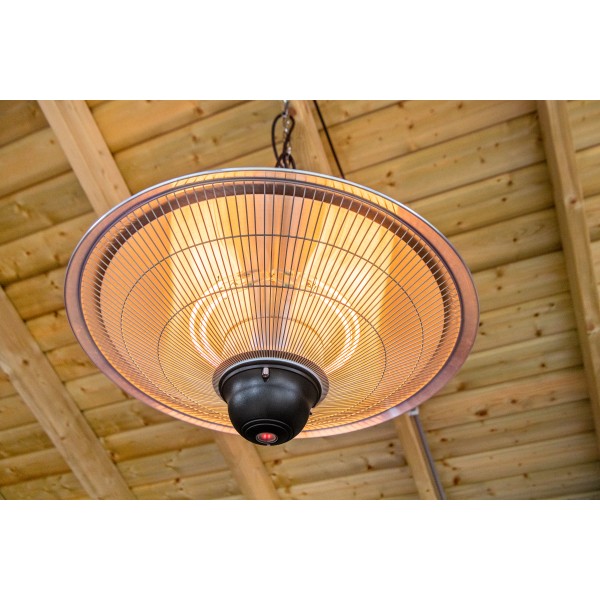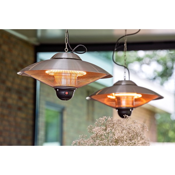 De heater heeft 2 standen, is waterbestendig en kan zowel binnen als buiten gebruikt worden