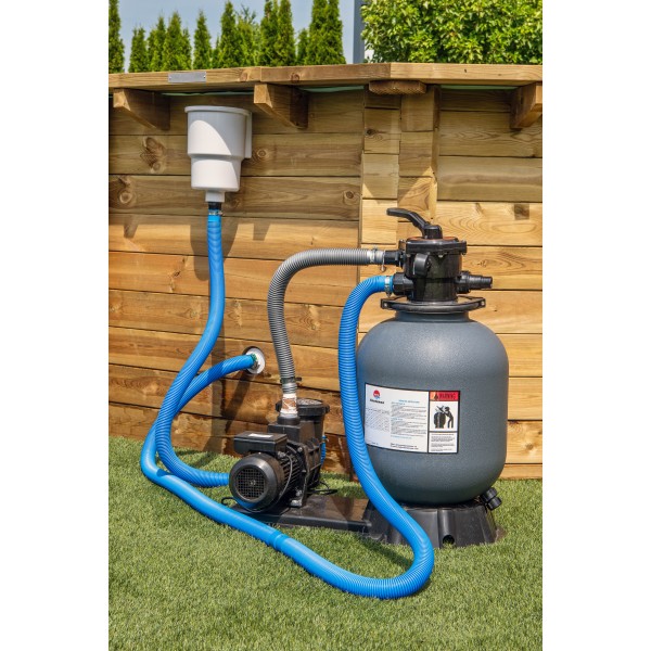 Het meegeleverde filter is voorzien van een tank met een diameter van 525mm, waardoor er voldoende ruimte is voor efficiënte filtratie. Met een krachtige pomp van 0,75kW (gelijk aan 1HP) en een filtercapaciteit van 11100 liter per uur, garandeert het filter optimale prestaties. De aansluiting kan eenvoudig worden gerealiseerd via een 1,5″ kleppoort.