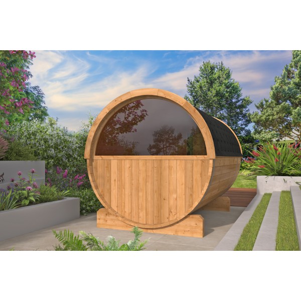 Saunabarrel | Ø205 x 300 cm | 42 mm | Thermowood | met ½ panorama raam
